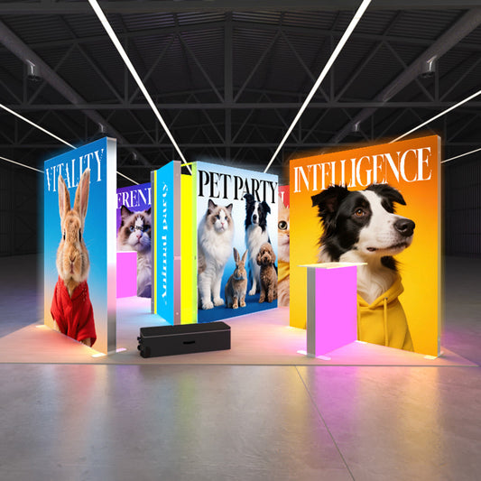 Our LED Lightbox collection is available in a wide range of sizes, including 2m, 2.5m, and 3m in height. The 2m (H) light boxes—offered in 1m, 2m, and 3m widths—are ideal for shell scheme exhibition stands, retail environments, or any space with height limitations. For larger or more open setups, the 2.5m (H) options come in 1m, 2m, and 3m widths, making them a great choice for both shell scheme and space-only exhibition stands. Designed to elevate any environment, our lightboxes turn ordinary spaces into eye-catching focal points, perfect for promotional and marketing events.