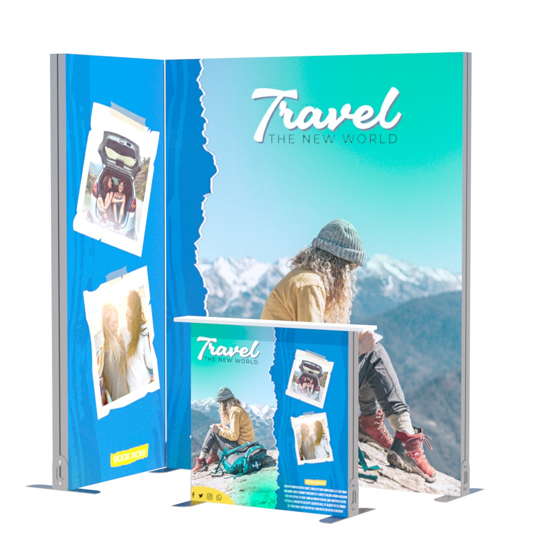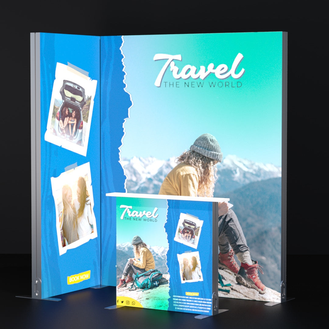 Transform your exhibition space into a modern, eye-catching display using a backlit LED stand with overhead illuminated graphics. Renowned for outperforming traditional, non-illuminated stands, backlit display kits show off your business’s branding for additional visibility.